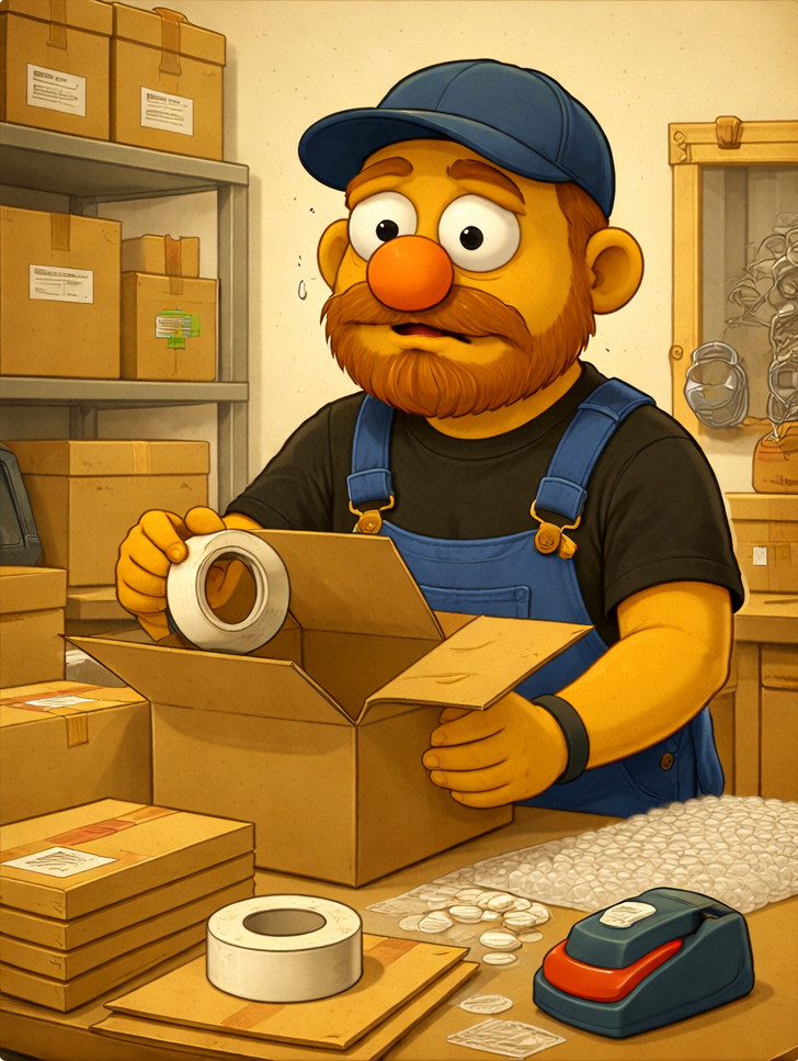Lernt gerade wie man Kartons und Versandtaschen befüllt.